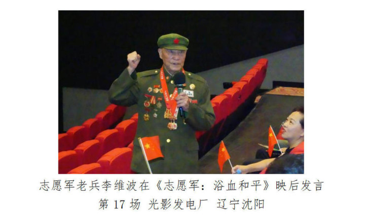 在主题观影活动中,全国各地都有非常特殊嘉宾的到场,他们中有亲历战场的老兵,有继承志愿军基因的英烈后代,有全家出动的老少三代,还有新时代的守护者,他们在映后的真切讲述与分享,串起了银幕上的光影叙事与现实中的个体记忆,让历史变得可触可感,让英雄形象更加鲜活饱满,他们也成为这场“见证胜利”的观影中,最真实的“历史注解”。